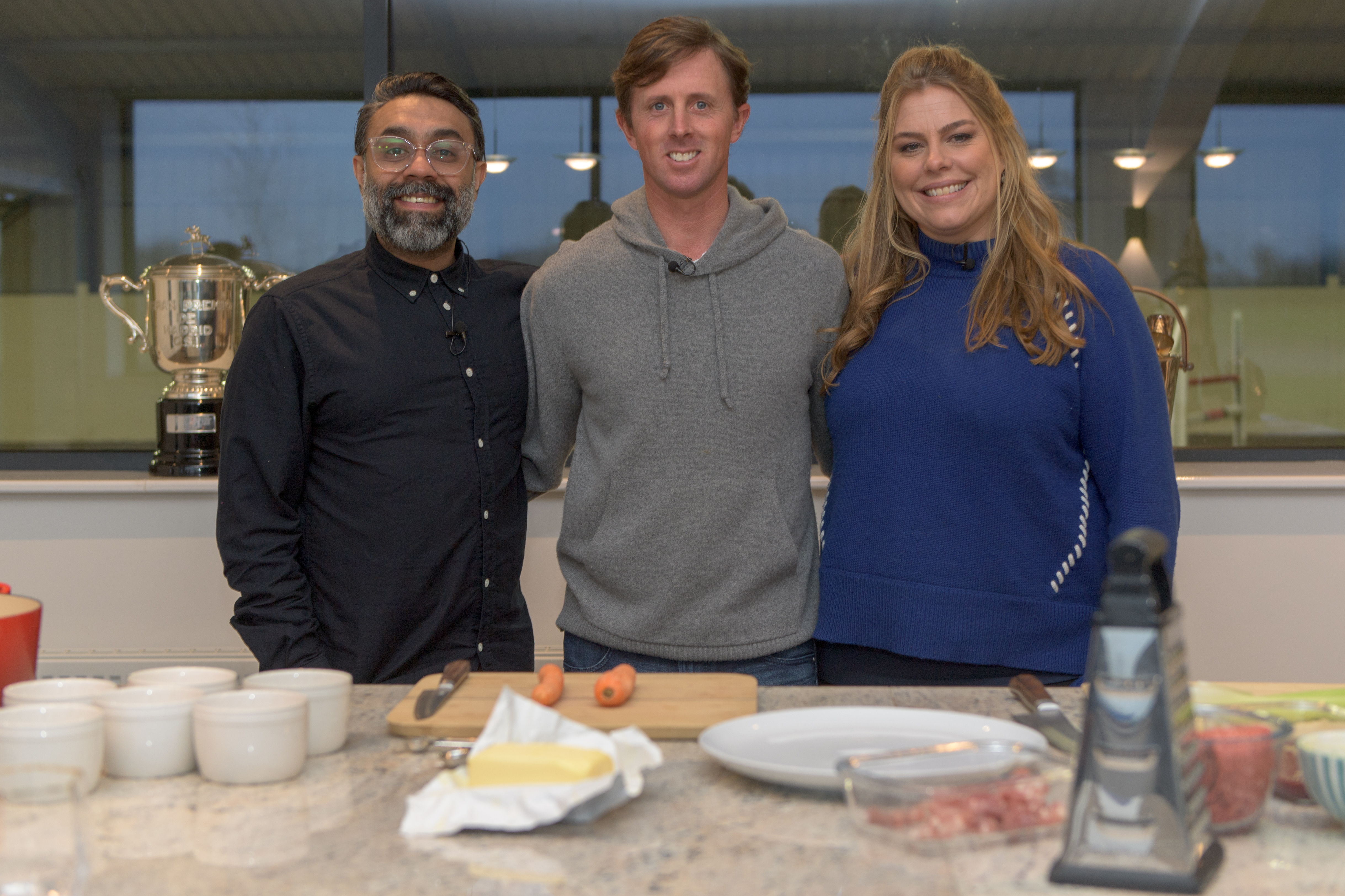 In a break with the normal format of the show, Ben acknowledges that he doesn’t spend a huge amount of time in the kitchen. So rather than Ben cooking for Daisy, Daisy and Ben work together to whip up Ben’s favourite meal of spaghetti bolognese followed by chocolate fondant. They’re joined in the enterprise by Daisy’s husband Pravin, who keeps things moving along while Daisy talks to Ben in one of the longest, wide-ranging, and revealing interviews he’s ever given.