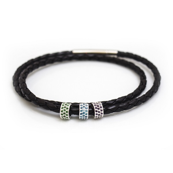 The Leather Charm Bracelets are available in two styles, as a single wrap and a double wrap. Both are made using plaited leather and have a stainless steel clasp that’s designed in a way to allow Roller Charms and other charm beads to slide onto the bracelet.