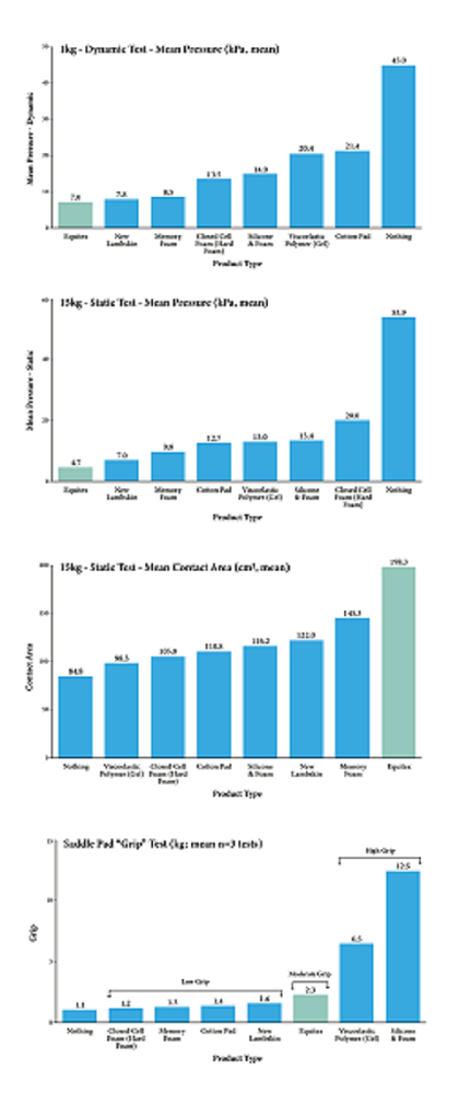 - The Equitex Saddle Pad is proven to reduce both peak and mean pressures by over 84%.