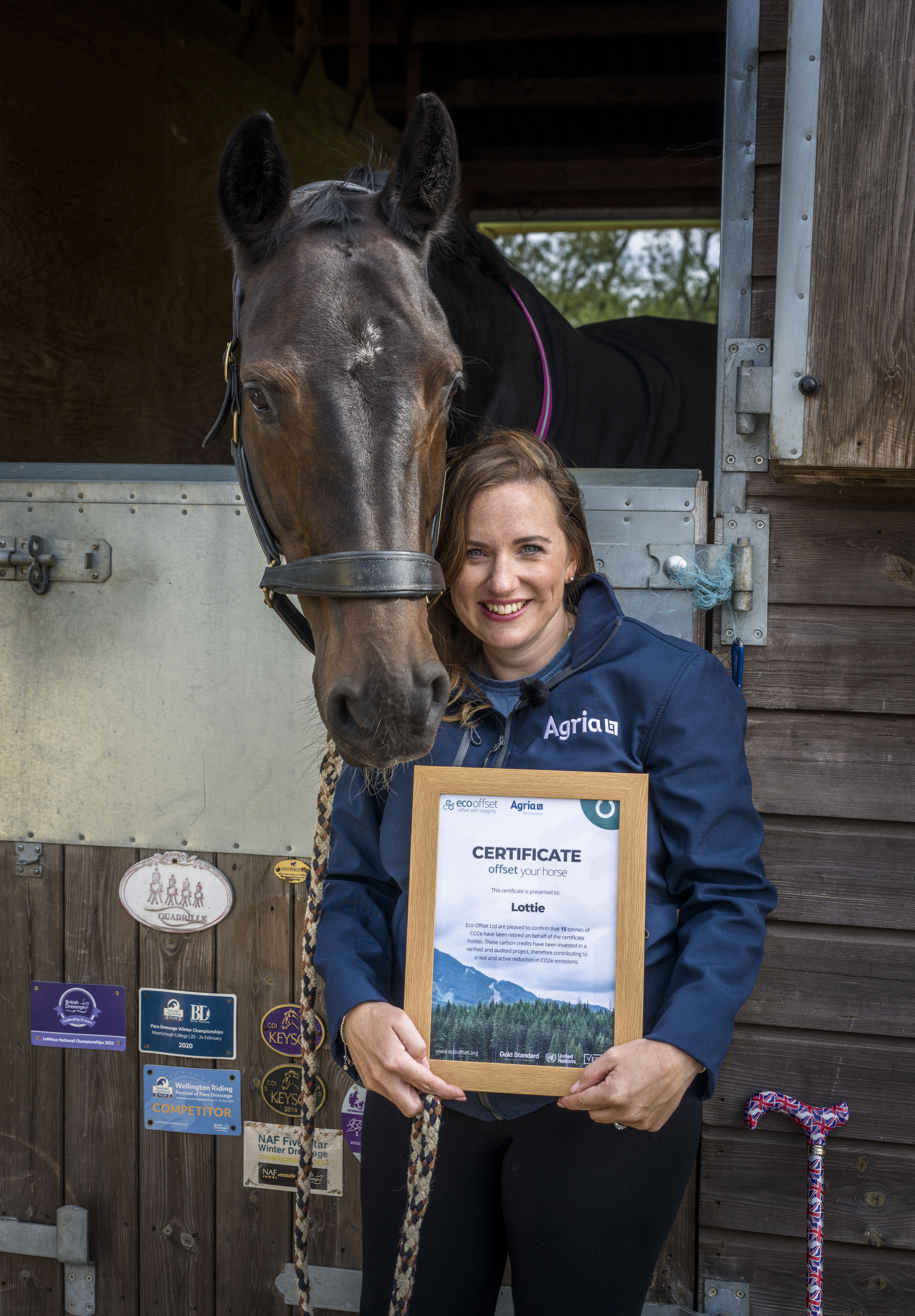 Ros Canter, Joe Stockdale, Gareth Hughes and Natasha Baker are all proud owners of Eco Offset Certificates for a leading horse on their team, showing the number of carbon credits invested in verified projects to contribute a real and active reduction in CO2e emissions.