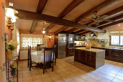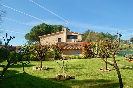 Standing in 5 acres with arable fields, shady woods, well established gardens with automatic watering system, fruit trees, and a fenced vegetable garden, the south facing country house of Mas Can Vella, with its adjacent, independent cottage, is a haven of peace and tranquility and a perfect setting for any equestrian enterprise, or as a very comfortable family home with your horses and family pets.