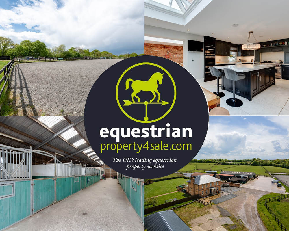 Grounds & location The house is set back from the lane in a prominent and slightly elevated position down a long gated drive, flanked by front isolation paddocks. The driveway leads to a five-bay garage and extensive areas for parking larger HGV size horseboxes.