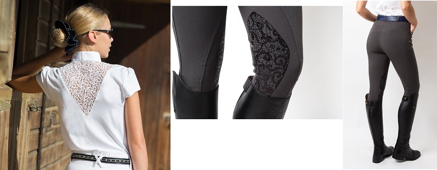 Falling in love is easy with these beautiful garments from British equestrian fashion brand, Equetech. The Equetech Interlace Breeches are new for spring and feature a gorgeous silicone lace print to knee grips. A beautifully feminine touch to a classically styled pair of breeches.
