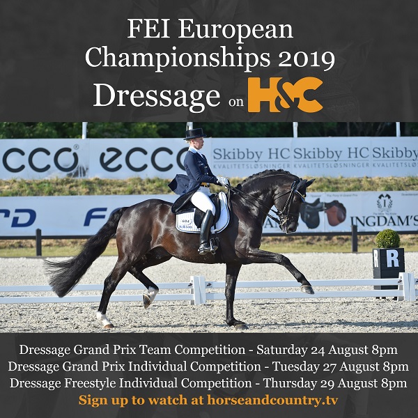 Coverage of the European Championships is available on Horse & Country Sky channel 184, Virgin Media channel 298, and on H&C’s streaming service at www.horseandcountry.tv