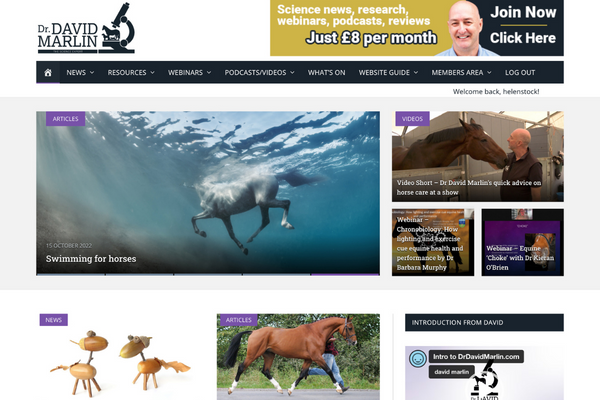 By joining DrDavidMarlin.com, members can navigate the very best advice from experts in the field on a range of equine welfare-related topics. The site is an independent information resource for all equestrians.