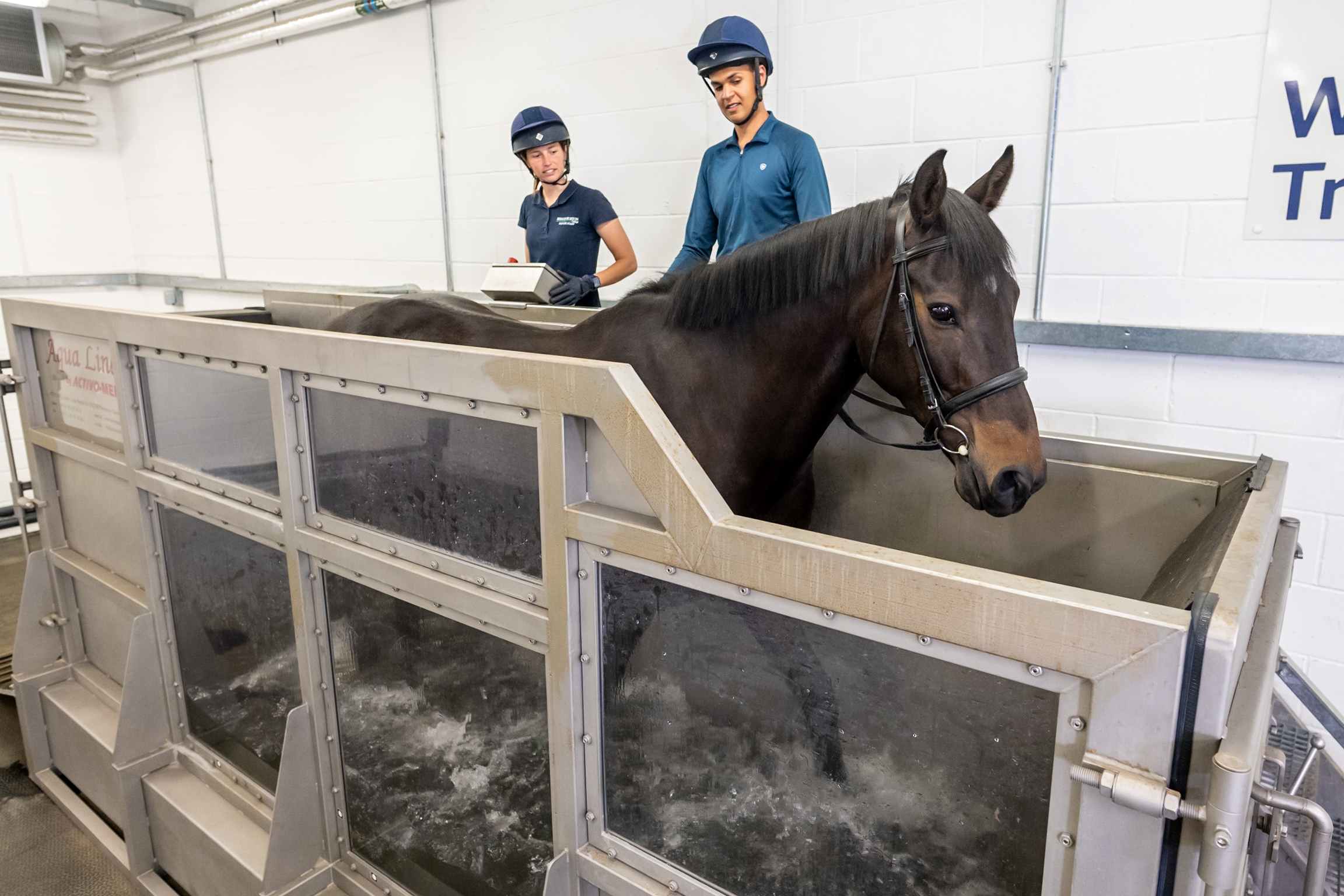 Horse welfare doesn’t start and end with the horse. The impact of our fitness as riders on our horses can’t be underestimated. I am a bit crooked – I’m a horse person, we’ve all been trodden on, fallen off and sustained injuries – and I really notice when I’ve not been keeping up with the gym, with physio and with massage, because my horses start to go crooked themselves. I start to impact them; I see muscle wastage on one side. So, it’s important we look after our riders to take care of our horses. If we’re fostering the next generation of riders and great equestrians for the industry it’s important, they know they need to take care of their bodies. To support students with this, in addition to our 40-piece commercial gym, we also have an equine-specific rider fitness and performance suite. Students here have access to interval training and Horatio and Bertie our amazing mechanical horses for equine-specific exercise.