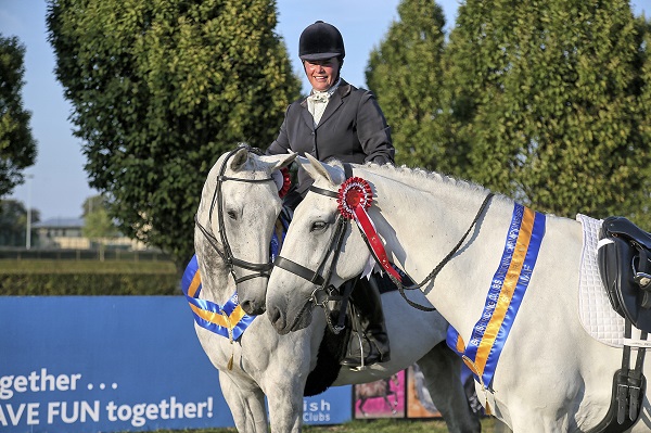 She made the successful long journey from her base in West Wales to the Lincolnshire Showground partnered by her two 17hh grey horses.