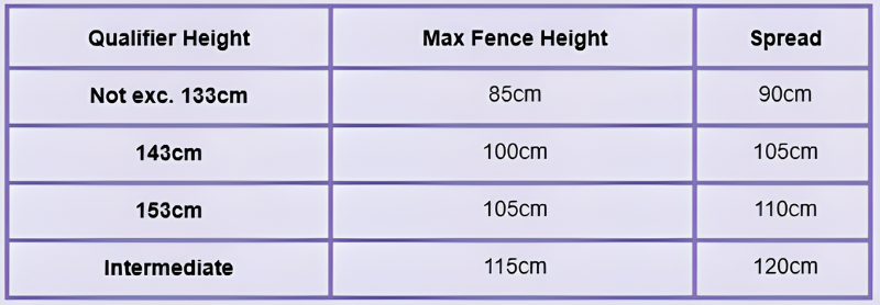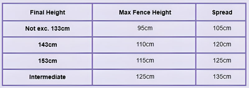 The course will consist of a minimum of twelve numbered fences, a minimum of two of which must be spreads. A change of direction must also be included.