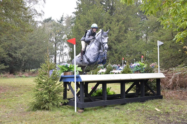 After the completion of the cross-country phase in The Howden Way 5YO Young Horse Championship, Sara Squires and Van Kaunitz are in first place, the handsome grey putting in a foot perfect round.