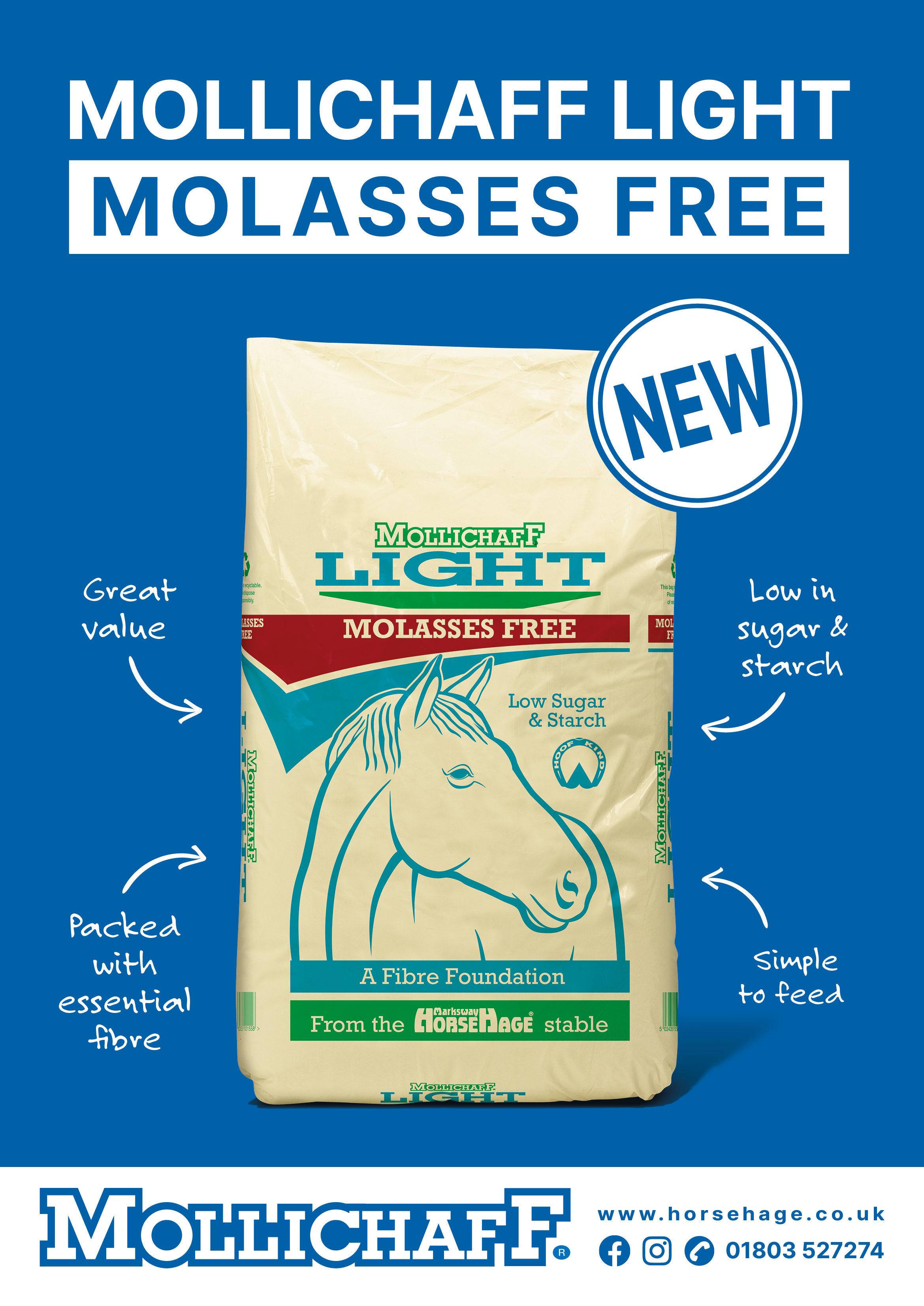 “We are excited to announce the launch of Mollichaff Light Molasses Free.” said Mark Westaway, Marketing Manager at HorseHage & Mollichaff. “Applying our more than 30 years of experience producing high quality and great value chaffs, we are proud to add to our range another great chaff for owners and riders looking to add fibre to their horse or pony’s diet.”