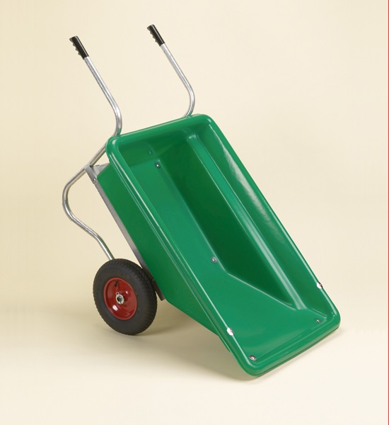 The tough Stubbythene body in Blue, Green or Baby Pink has stepped sides to increase strength and capacity and a steel reinforced front with a galvanised steel frame for lifelong durability. The colossal top size allows high peaked loads whilst retaining full manoeuvrability. Whether mucking out or carrying bales and sacks, this workhorse is formidable.