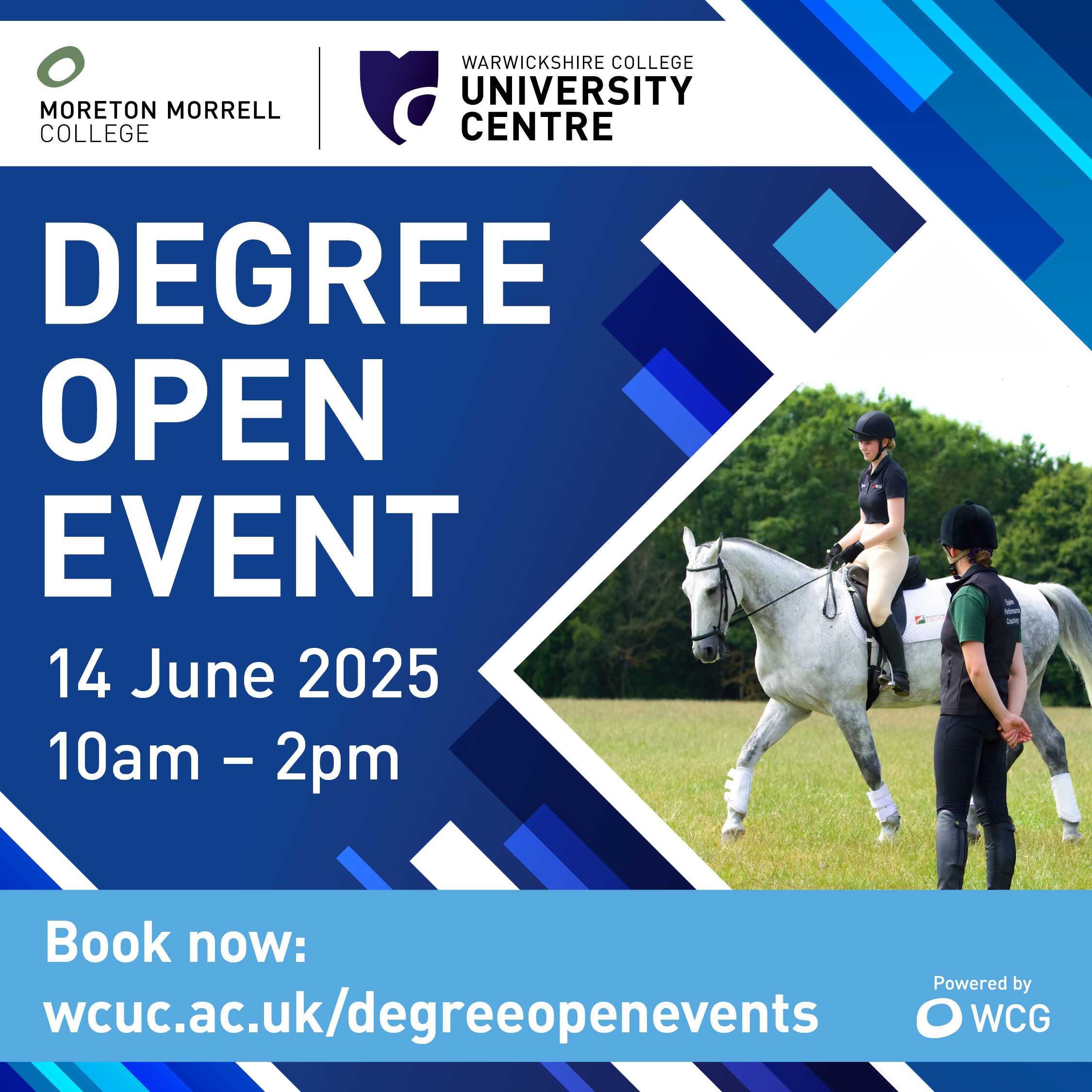 Join us for our Higher Education Open Event on Saturday, 14th June, to explore the campus, meet the tutors, and find out how WCUC can help you take the next step towards a successful future in the equine world.