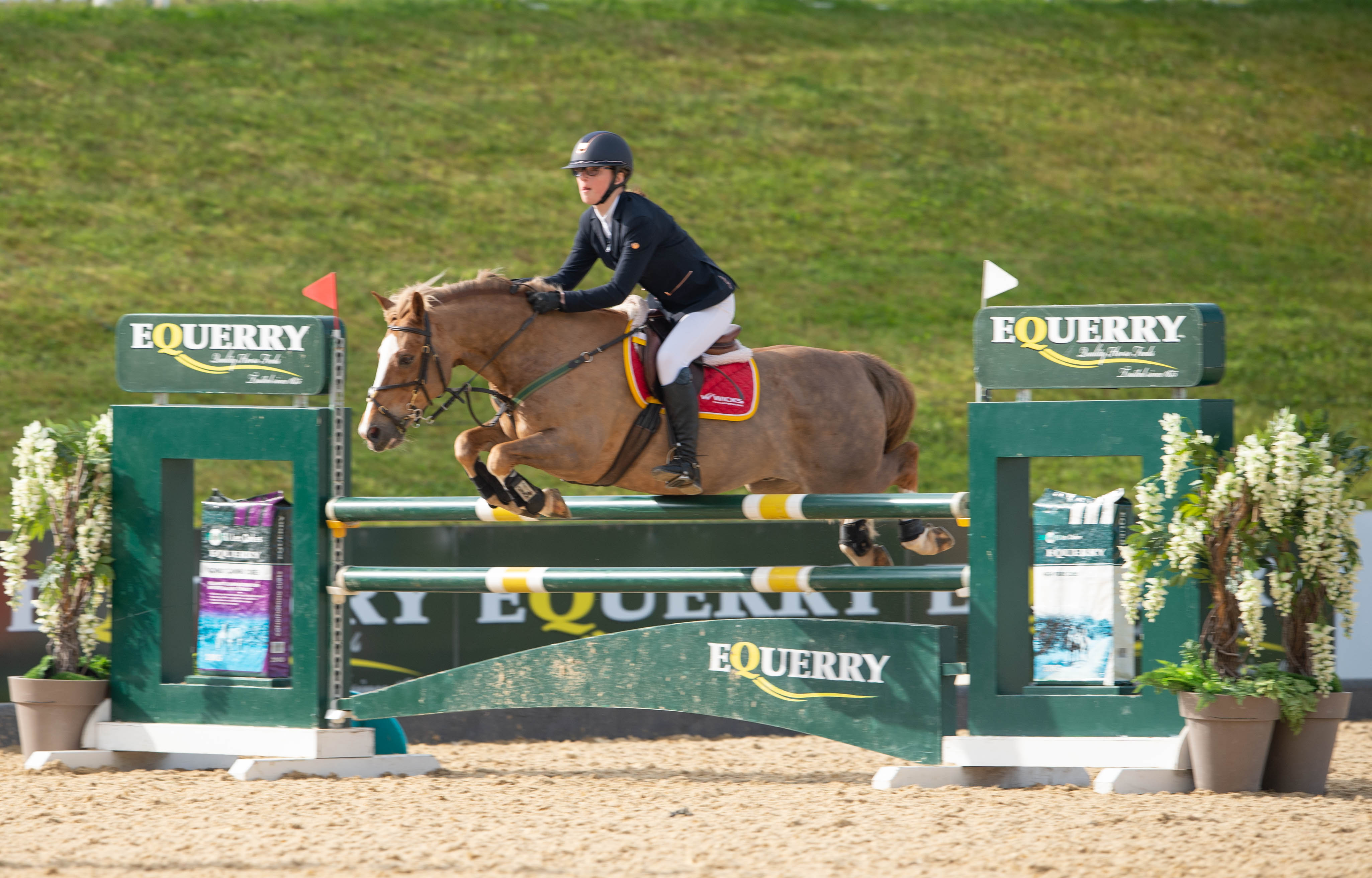 Sophie Wicks delivered an assured display to win the 128cms Pony Grand Prix at the Equerry Bolesworth International Horse Show. The 12-year-old Cumbrian rider was in commanding jump-off form on Camizion, clocking 36.32 seconds after six combinations made it through from round one.