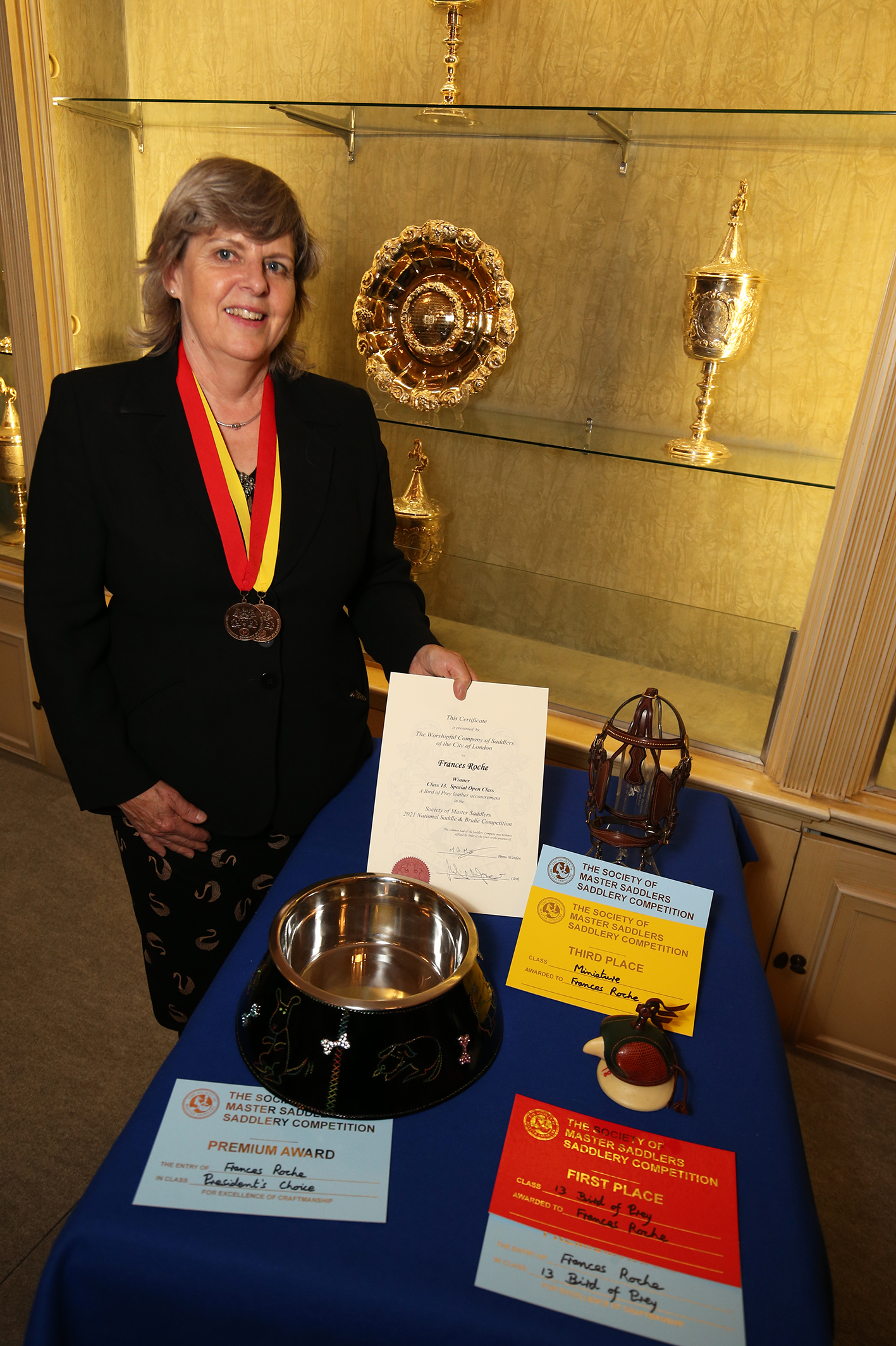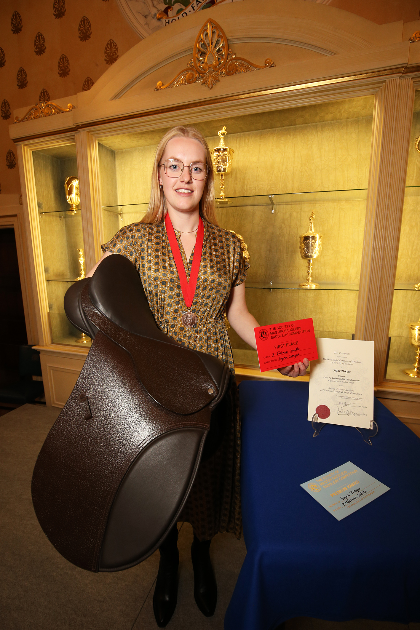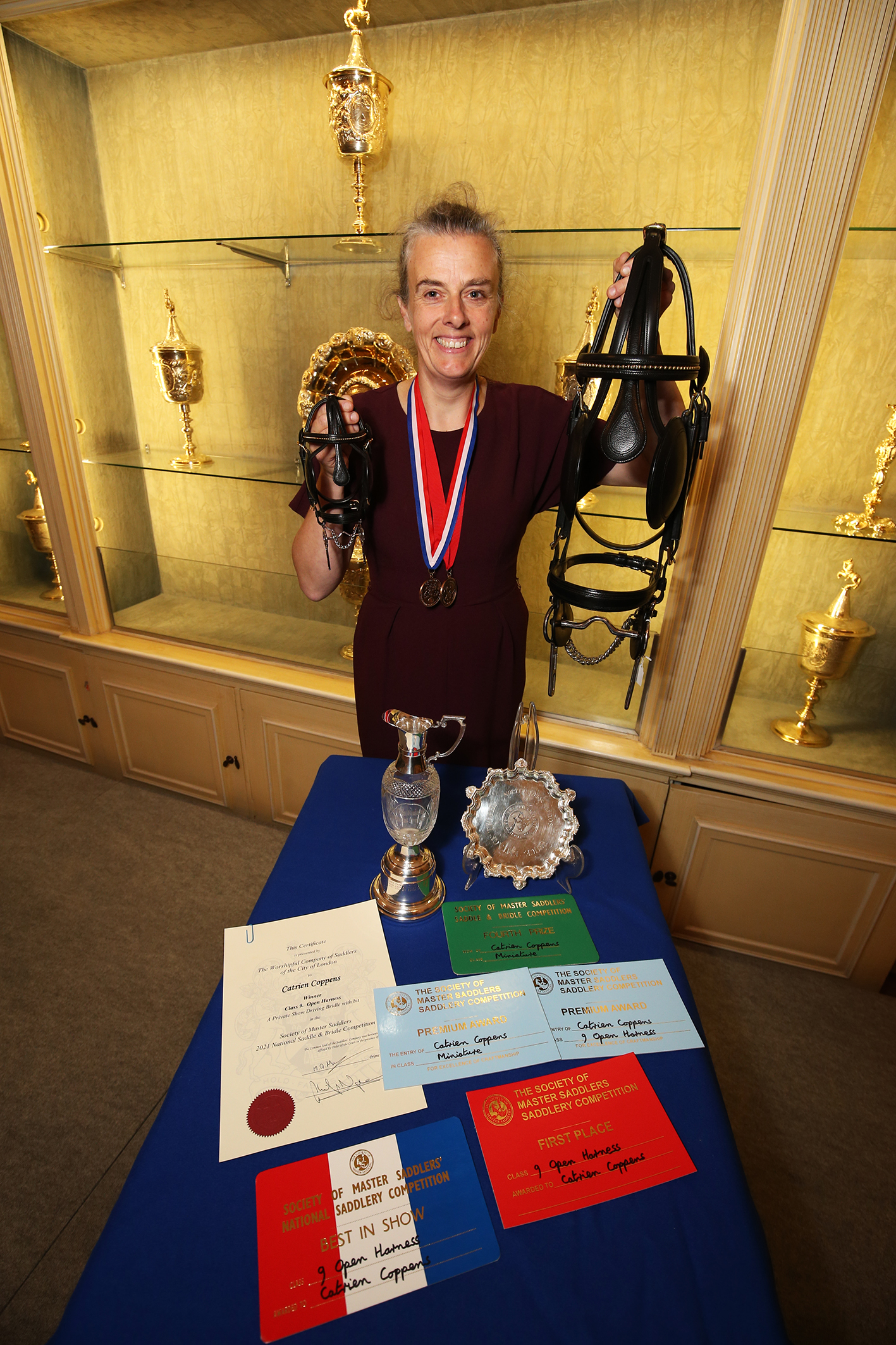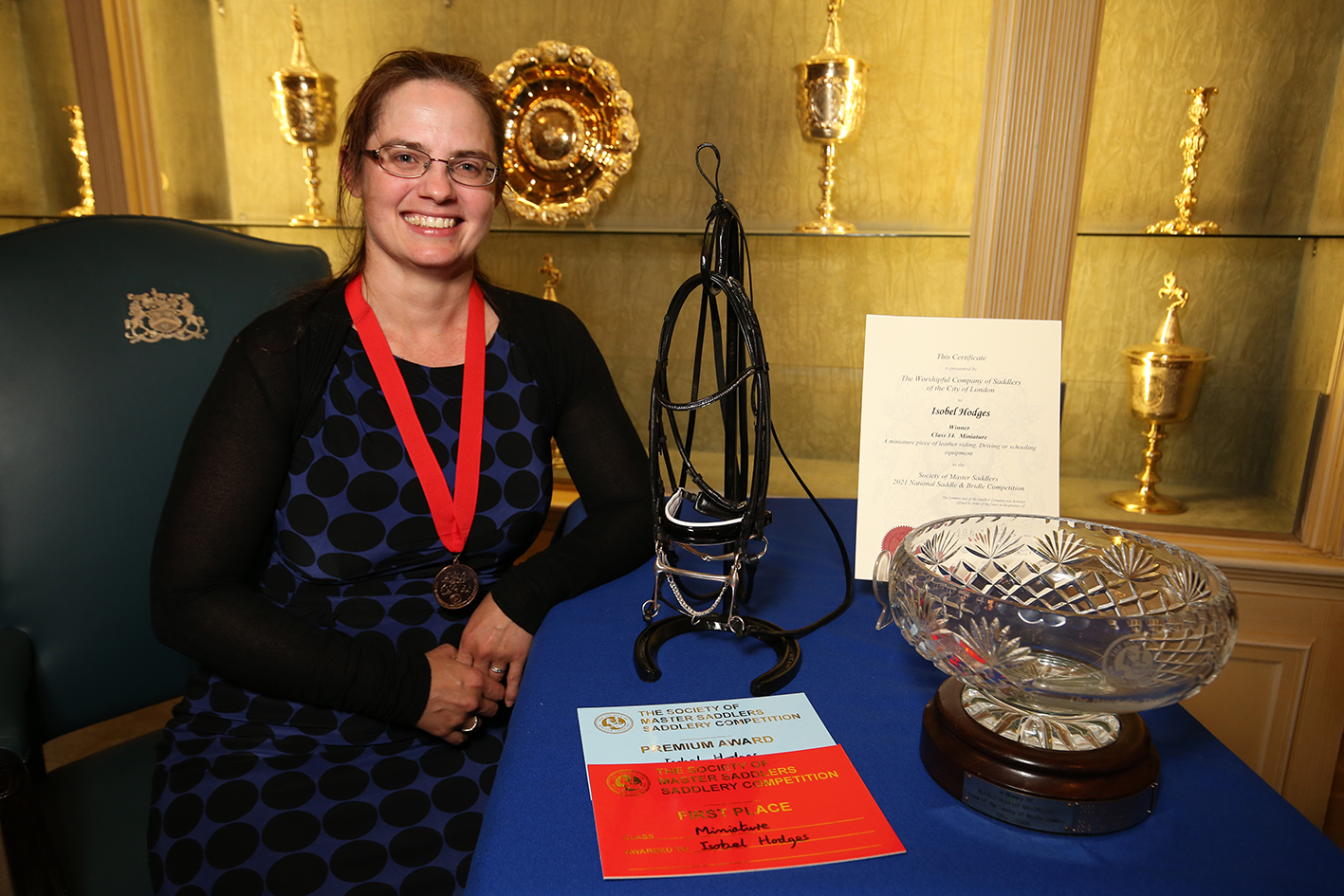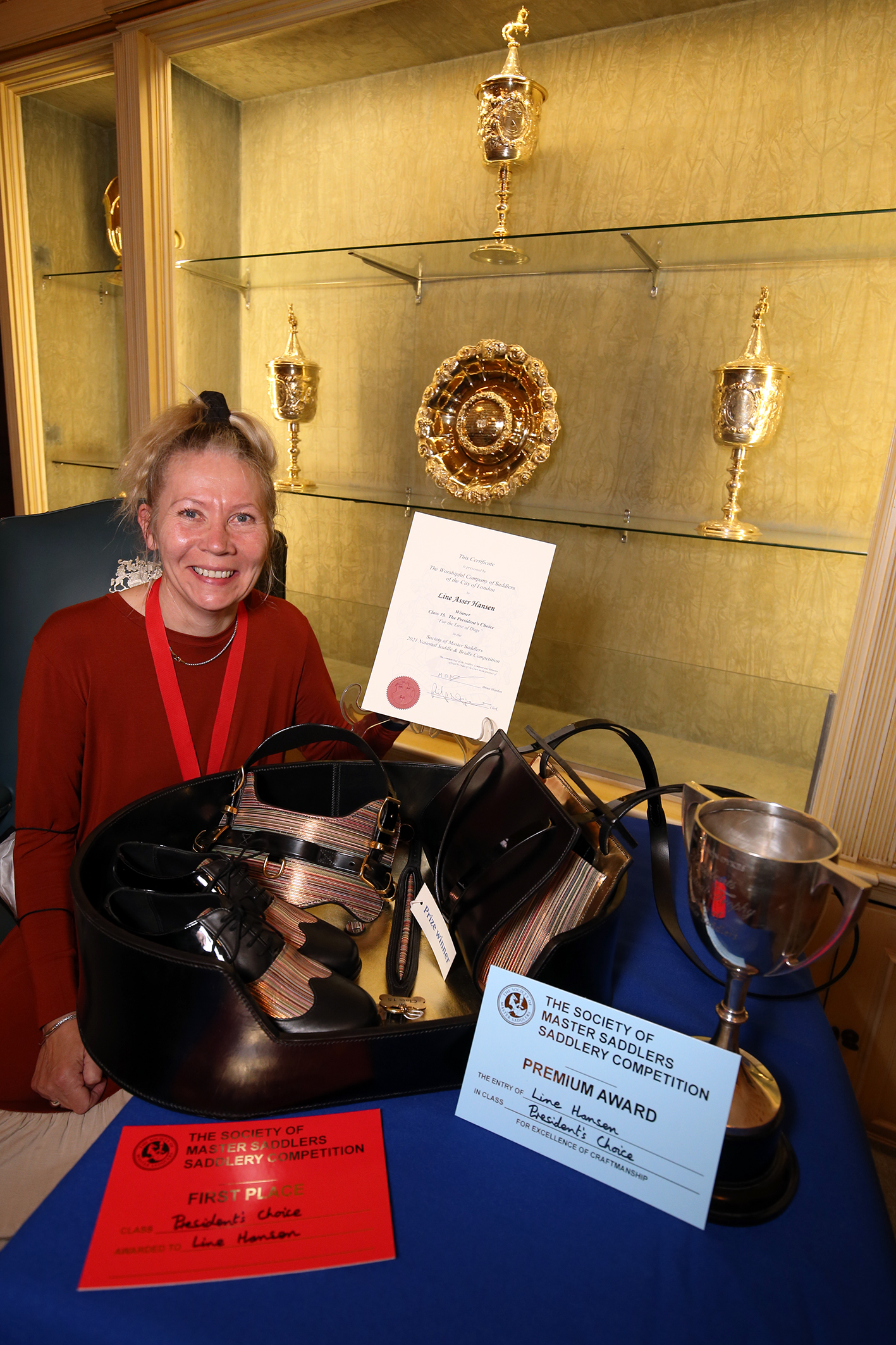 The awards were presented by The Worshipful Company of Saddlers, Prime Warden, The Hon Mark Maffrey who also enjoyed being asked to judge. Following a host of awards throughout the evening, Catrien Coppens was the delighted winner of the Bruce Emtage Memorial Plate for Best in Show for her entry in the Open Harness class for making a Private Show Driving Bridle.