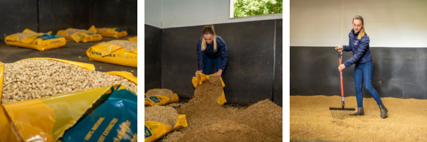 6-8 bags of STRAWMAX make a full bed 20-24cms deep in a standard 12 x 12 stable. A bucket of water per bag will swell them to 3 x volume but still leave them super absorbent to soak up urine. Maintaining an optimum bed should only require about 1 bag per week.