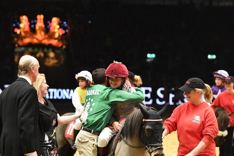 Frankie Dettori embraces son Rocco, after an emphatic win in the Osborne Refrigerators Shetland Pony Grand National