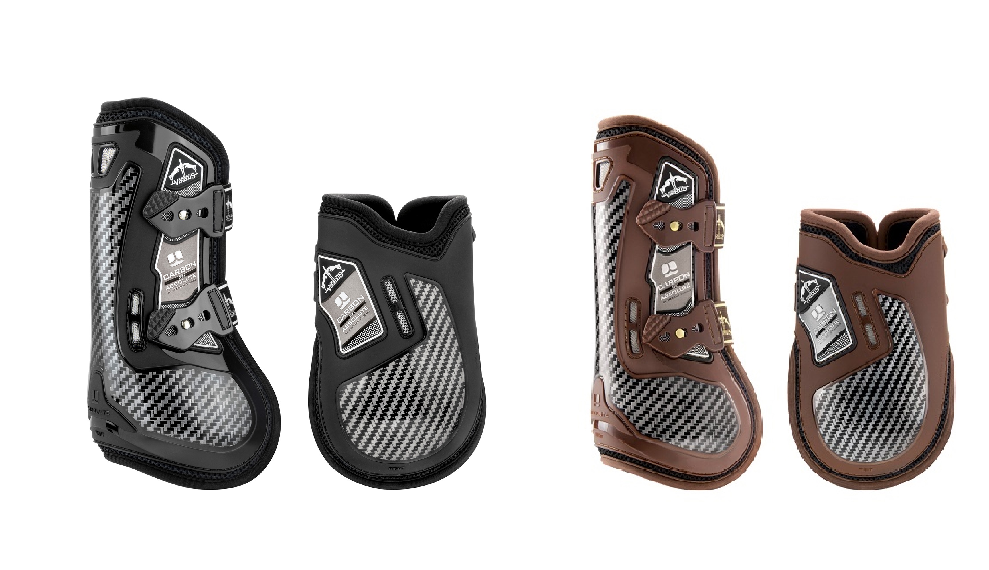 The new Veredus Carbon Gel Absolute is available in Black or Brown, in sizes Medium or Large with a price of £215 for the front tendon boots and £169 for the hind fetlock boots.