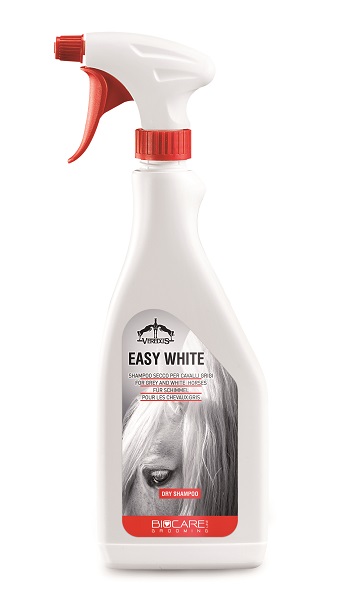 The no rinse Veredus Easy White dry shampoo is excellent for coat, mane and tail.