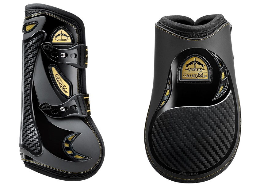 Veredus Grand Slam boots are quick release and benefit from tendon and fetlock protection in carbon and nitrexgel and have an anatomically shaped shell.