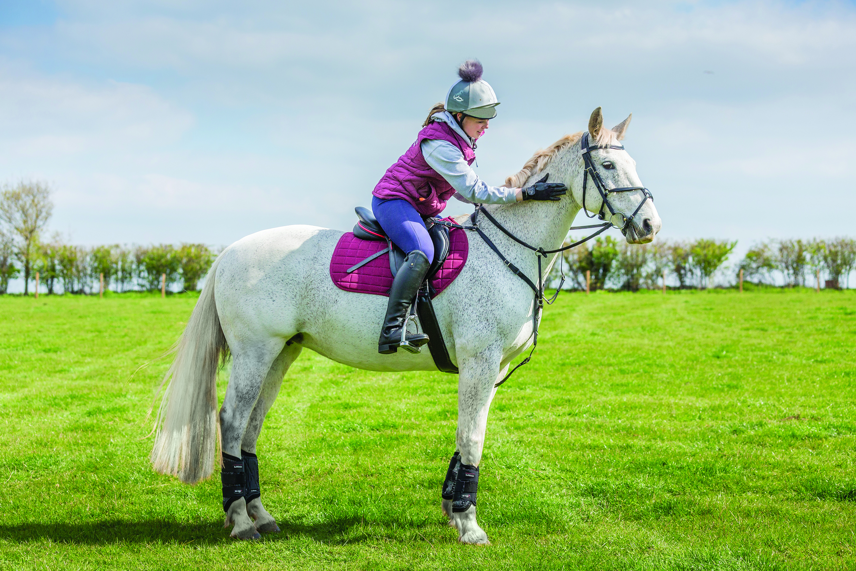Full time student, Emily Hancock, has a great partnership with her grey mare, 17-year-old Phoebe. A Dutch Warmblood, Phoebe is a former show jumper and they have been together for just over a year.